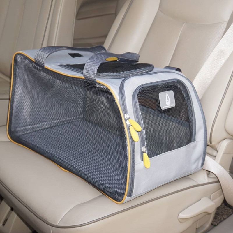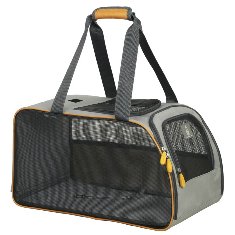 Дорожня сумка-переноска з довгими ручками для дрібних собак та котів Walney – зручна транспортна сумка для тварин вагою до 6 кг, що виготовлена з мікрофібри та має знімне дно, що дозволяє легко доглядати за виробом. Сумка оснащена карабіном всередині для фіксації тварини, який унеможливлює раптове вискакування з сумки. Постійний приплив свіжого повітря і хорошу циркуляцію забезпечують чотири сітчасті вставки,а передня та верхня стінки на застібці-блискавці дозволяють легко перетворити переноску на зручний будиночок. Ця транспортна сумка має два практичних відділення де можна зберігати, наприклад, довідку про щеплення, ласощі, посуд або іграшки улюбленця.