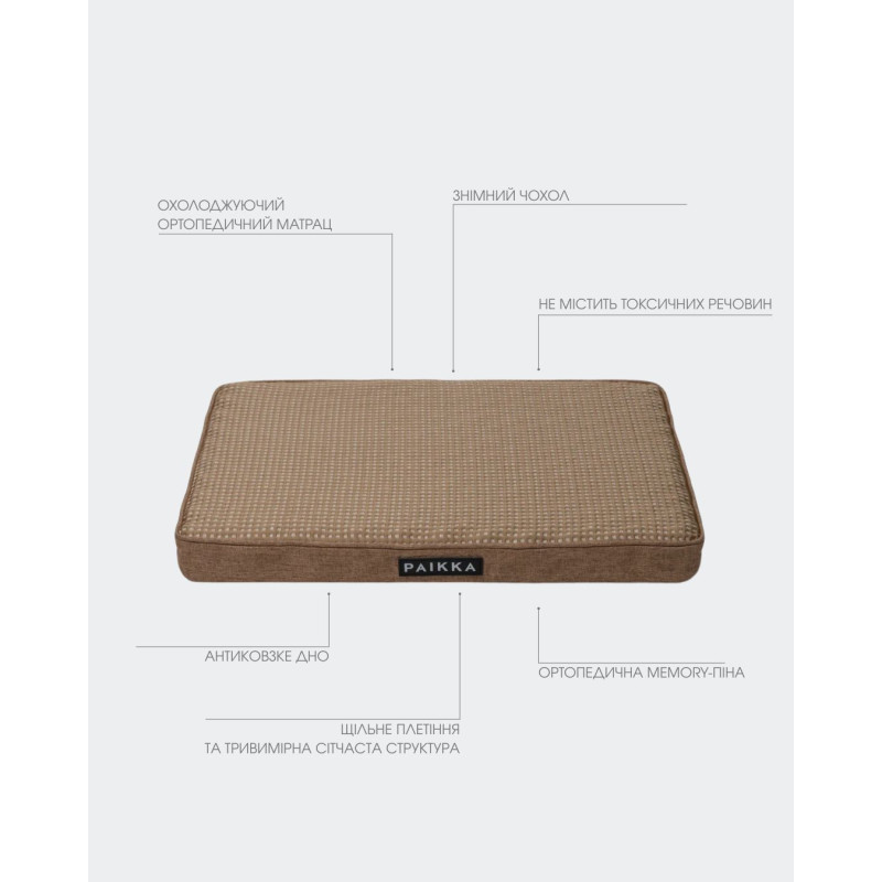 PAIKKA Orthopedic Cooling Mattress Taupe Ортопедичний охолоджуючий матрац для собак зі знімним чохлом