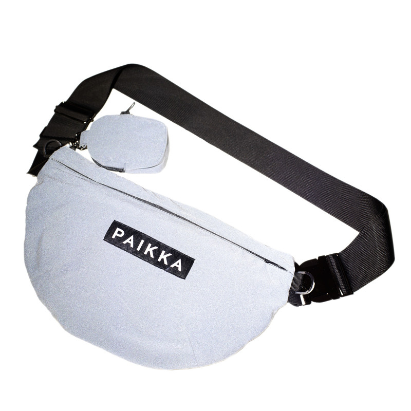 Сумка має сучасну форму "бананки", яку зручно носити як на поясі, так і через плече на животі, й вироблена з Pronto-текстилю з додаванням Glass-волокна. Це водонепроникна та брудовідштовхувальна тканина з наночастичками скляного пилу, що дає змогу повністю змінити колір виробу під час потрапляння на нього штучного світла, яскраво підсвітивши людину неоново білим кольором, забезпечивши їй додаткову безпеку у темряві.