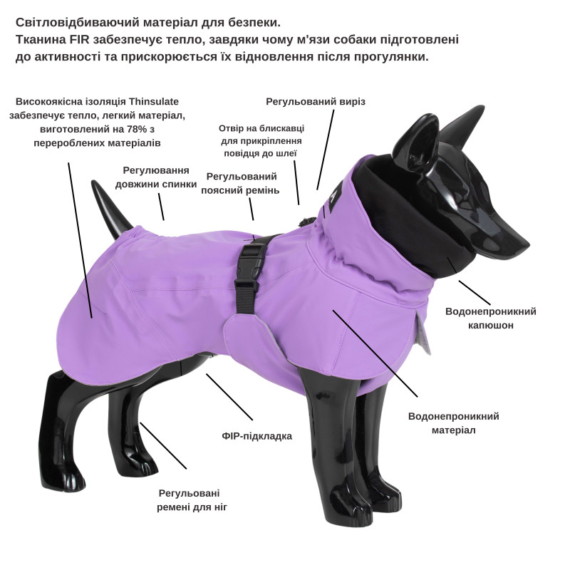 PAIKKA Visibility Winter Jacket Lilac Зимова куртка з FIR-підкладкою та повним світловідбиванням для собак