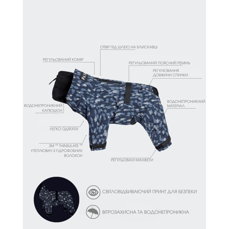 PAIKKA Winter Suit Blue Водонепроникний зимовий костюм зі світловідбиваючим візерунком для собак
