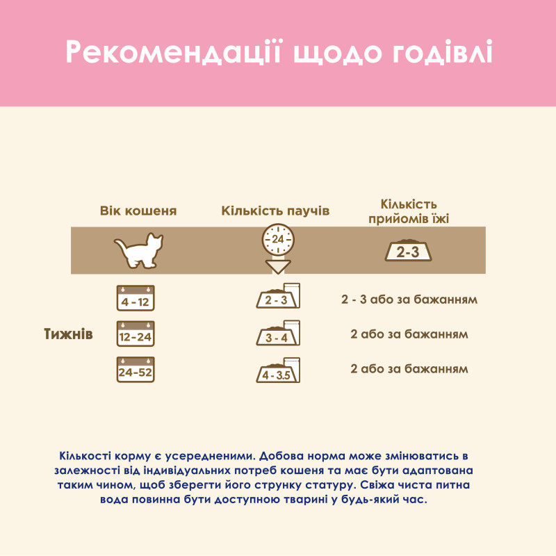 | Вік | Кошенята |