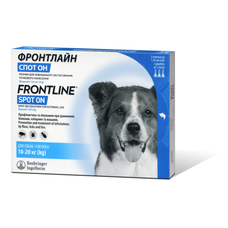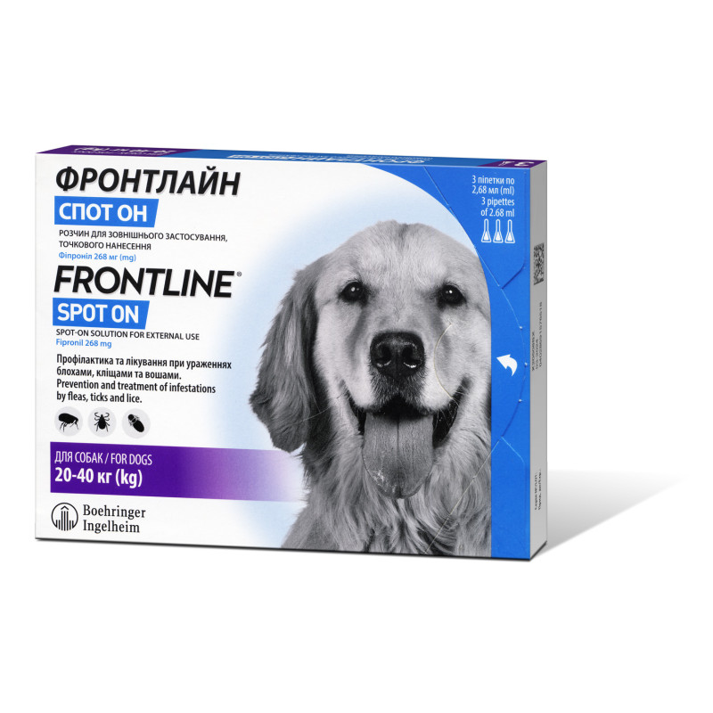 Boehringer Ingelheim Frontline Spot-on Dogs Капли от блох, вшей и клещей для собак Фронтлайн Спот-он