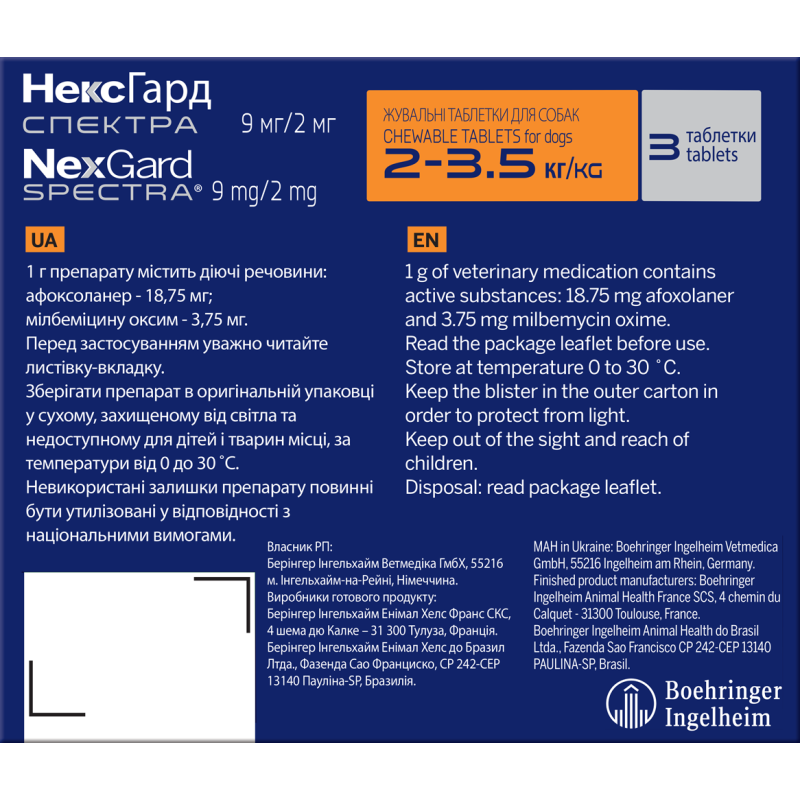 Boehringer Ingelheim NexGard Spectra Dogs Жевательные таблетки против всех видов паразитов для собак НексГард Спектра