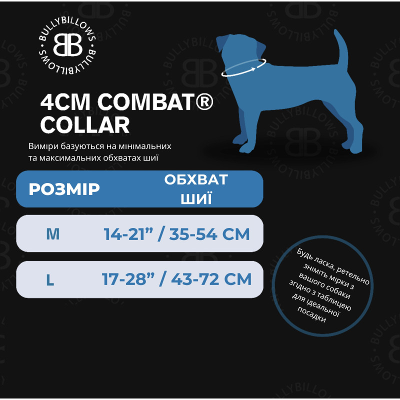 Водонепроницаемый ошейник Billowthane Waterproof & Anti-Rust Combat Collar 4 cm разработан совместно с учеными кафедры животноводства Ноттингемского Университета для служебных, рабочих, активных собак средних и небольших пород с чувствительной кожей и шерстью. Эта модель - безоговорочный лидер в выборе кинологов и владельцев служебных или рабочих собак. Изготовлен из биотана – материала, покорившего мир своей сверхпрочностью и износостойкостью. Биотан гипоалергенный, не поддается гниению, не способствует размножению патогенных микроорганизмов, не деформируется даже после длительного пребывания в воде, выдерживает нагрузку до 450 кг, устойчив к воздействию химических веществ, экстремальных температур, ультрафиолетового излучения и предотвращает натирание кожи и шерсти. Модель Billowthane Waterproof & Anti-Rust Combat Collar 4 cm оснащена фронтальной петлей D-Loop из нержавеющей стали диаметром 6 мм и специальным комбат-замком из альпинистской стали с антикоррозийным покрытием, который прошел проверку давлением до 2 тонн. Замок открывается и фиксируется с помощью рычагов с обеих сторон, которые необходимо открыть и закрыть только вручную, самостоятельное внезапное открытие невозможно. Перед выпуском модели в массовое производство, ошейник Billowthane Waterproof & Anti-Rust Combat Collar 4 cm успешно прошел испытания и тестирование на современном оборудовании на служебных средних собаках, активных собаках, доминантных собаках крупных пород и заооагресивных собаках гигантских пород. При разработке конструкции данной модели были учтены более 50 показателей различных видов давления на шею, грудину, лапы, суставы, связки и позвоночник и их влияния на состояние организма. Профессиональный ошейник Billowthane Waterproof & Anti-Rust Combat Collar 4 cm полностью исключает любой вред для здоровья собаки и предотвращает заболевания опорно-двигательного аппарата в будущем. Модель выпускается в черном цвете с тремя видами окраса комбат-замка и разных размерах. Рекомендована для ежедневного использования активным и рабочим собакам. Если Ваш питомец склонен к доминации или рывкам, советуем выбрать модель боевого ошейника с ручкой Combat Collar Handle & Rated Clip 4 (5) cm. Для идеальной посадки и максимального комфорта советуем воспользоваться таблицей размеров.