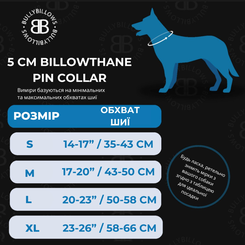 Водонепроницаемый широкий классический ошейник для собак с чувствительной кожей BullyBillows Billowthane Pin Collar 5 cm разработан совместно с учеными кафедры животноводства Ноттингемского Университета для служебных, рабочих, активных собак всех пород с длинной шеей и чувствительной кожей и шерстью. Эта модель - безоговорочный лидер в выборе кинологов и владельцев служебных, рабочих собак и собак-водолазов.