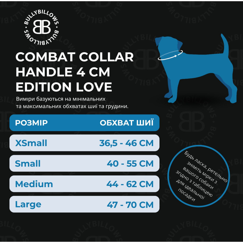 BullyBillows Combat Collar Handle 4 cm Edition Love Усиленный тактический ошейник с ручкой и рывковым замком для собак