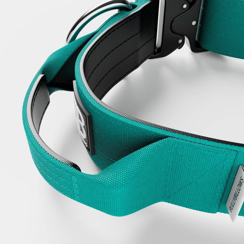 BullyBillows Combat Collar Handle 5 cm Профессиональный усиленный широкий ошейник с ручкой и рывковым замком для собак (Turquoise S)