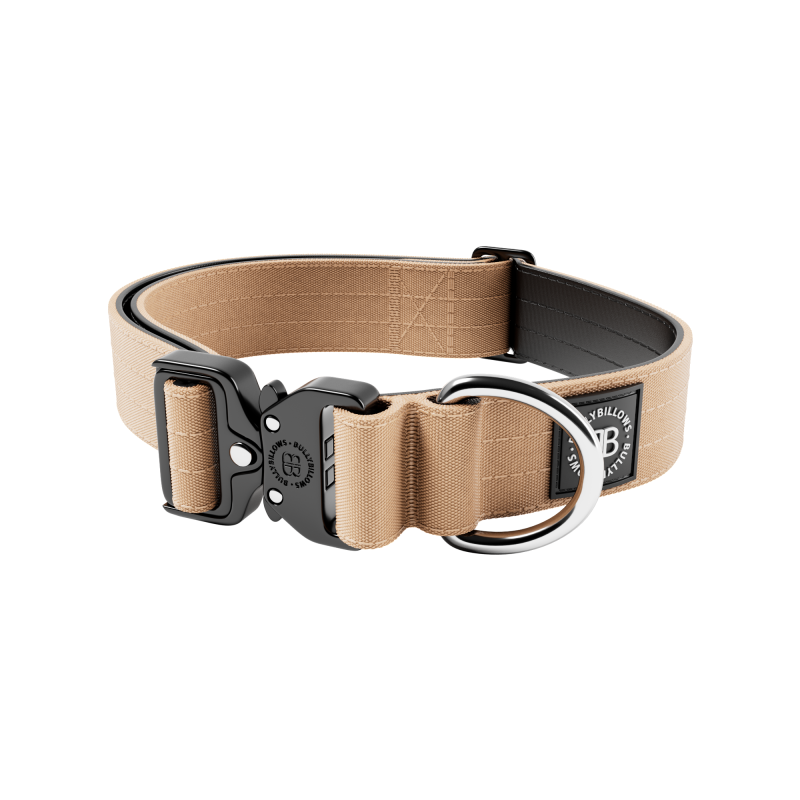BullyBillows Combat Collar No Handle 4 cm Профессиональный сверхпрочный ошейник для собак c усиленным замком (Beige L)