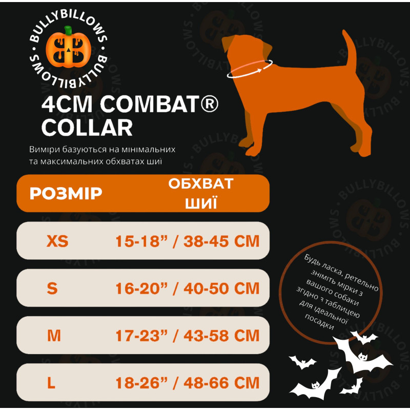 BullyBillows Halloween Boo Combat Collar Handle 4 cm Тактический ошейник для собак с ручкой и рывковым замком Хеллоуин