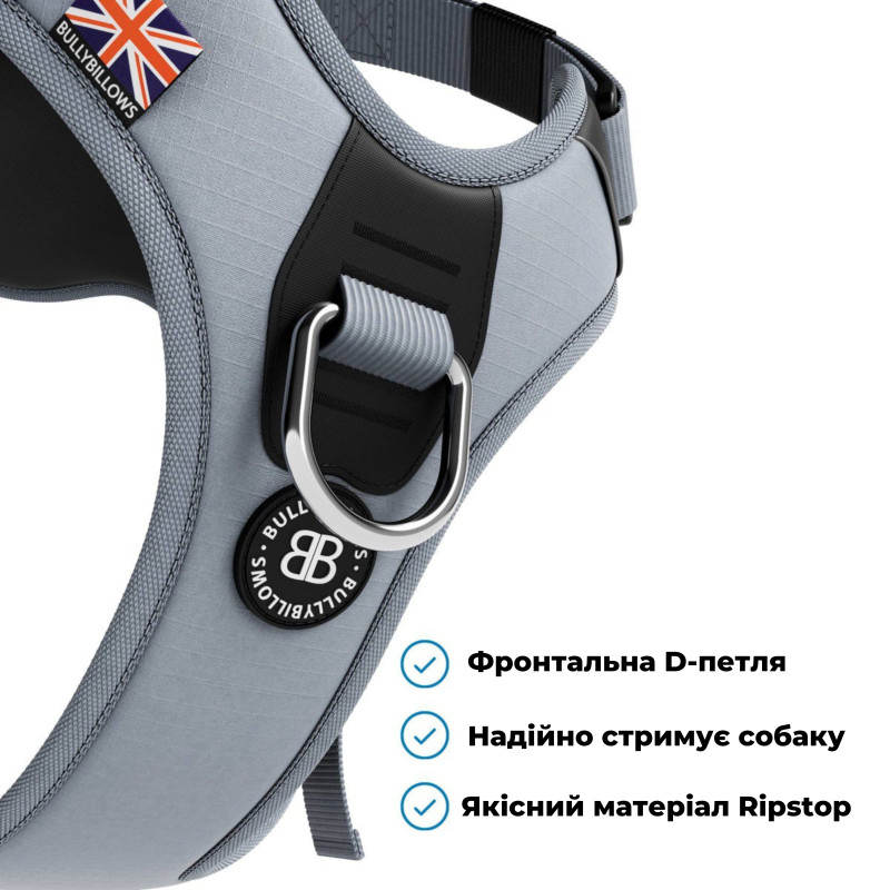 BullyBillows Hurricane Harness No Pull Водонепроницаемая анатомическая шлея для собак тянущих поводок (Grey D (L))