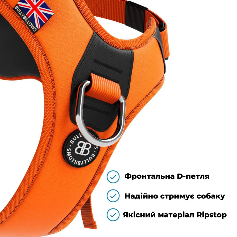 BullyBillows Hurricane Harness No Pull Водонепроницаемая анатомическая шлея для собак тянущих поводок (Orange D (L))