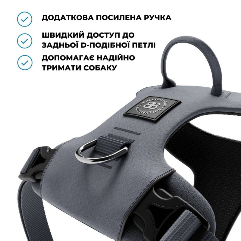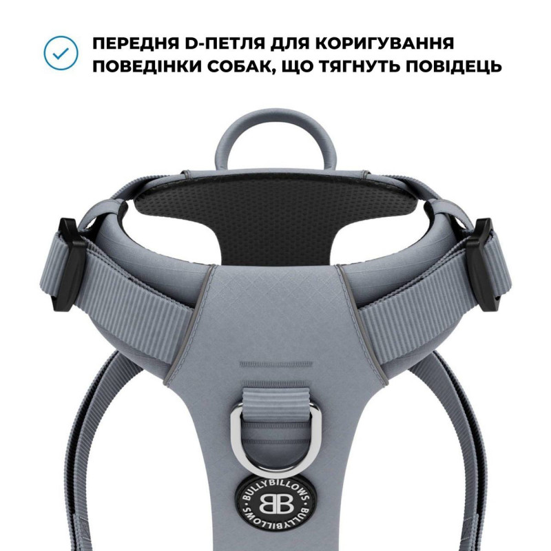 BullyBillows Lightweight Air Mesh Harness Анатомическая шлея для собак с ручкой и передним кольцом (Grey M (C))