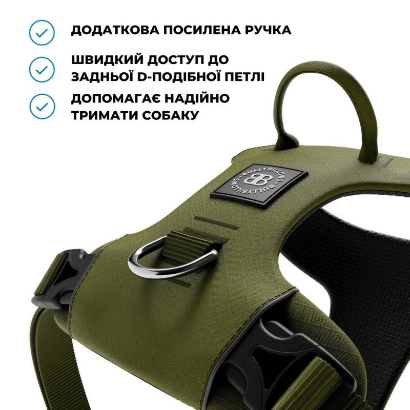 BullyBillows Lightweight Air Mesh Harness Анатомическая шлея для собак с ручкой и передним кольцом (Olive S (B))