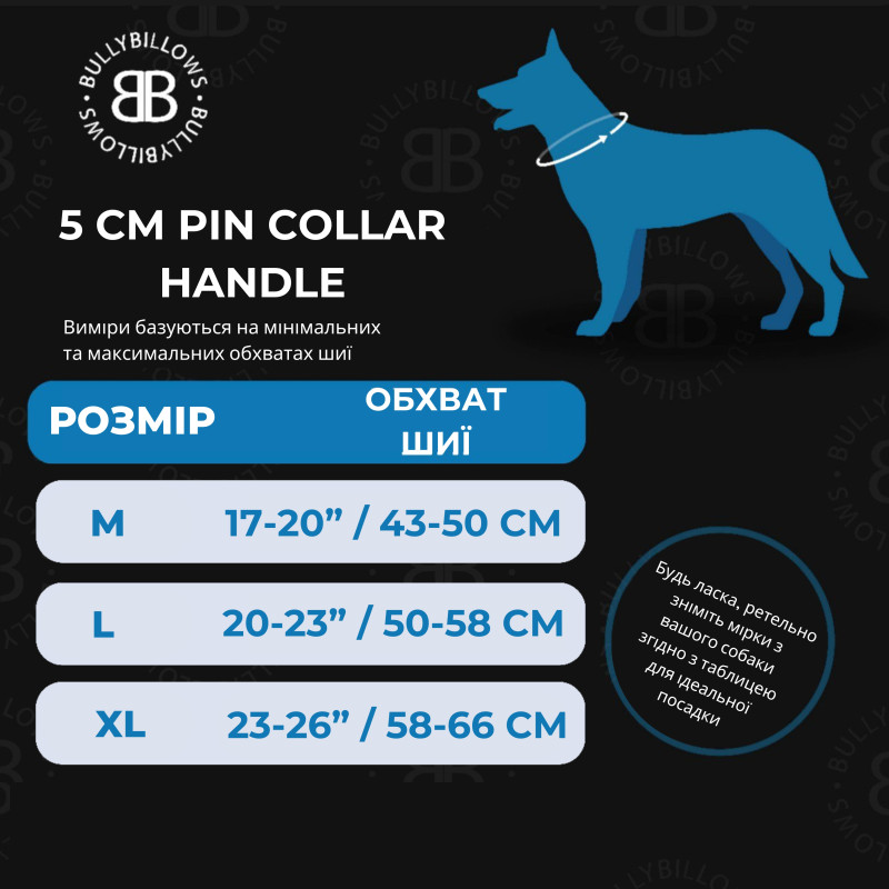 Тактический широкий ошейник с подкладкой для собак с чувствительной кожей BullyBillows Pin Collar Handle 5 cm разработан совместно с учеными кафедры животноводства Ноттингемского Университета для служебных, рабочих, активных, доминантных собак крупных пород с длинной шеей. Эта модель - безоговорочный лидер в выборе кинологов, военных, спасателей, спецназовцев и владельцев служебных рабочих собак.