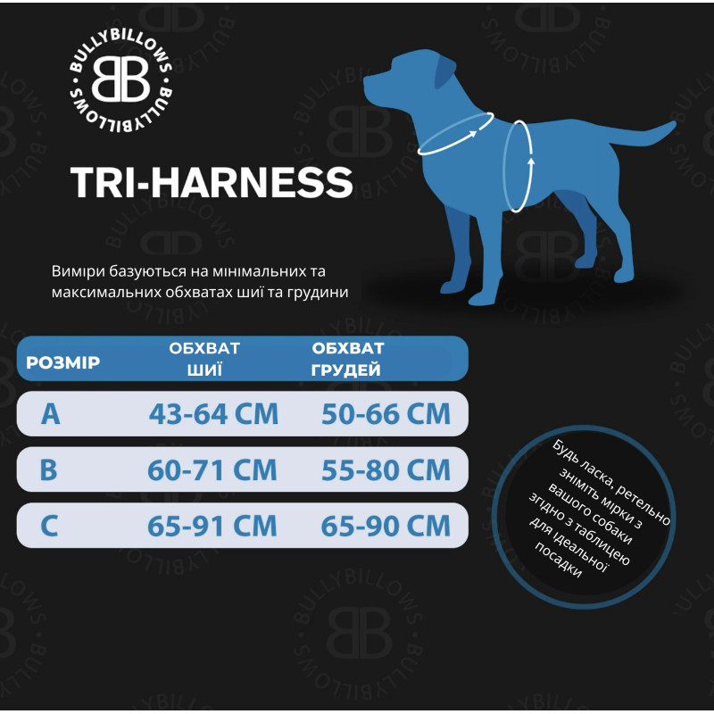Шлея TRI-Harness створена спільно з науковцями кафедри тваринництва Ноттінгемського Університету для середніх та великих активних собак, схильних до емоційного збудження чи потребуючих корекції поведінки. Підходить для будь-якого типу шкіри та шерсті, включно чутливої та надчутливої.