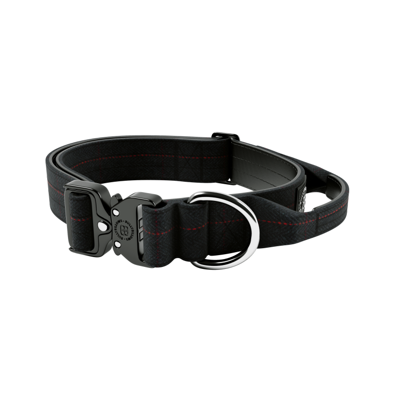 BullyBillows Tweed Combat Collar Handle 4 cm Твидовый тактический ошейник для собак с чувствительной кожей (Black S)