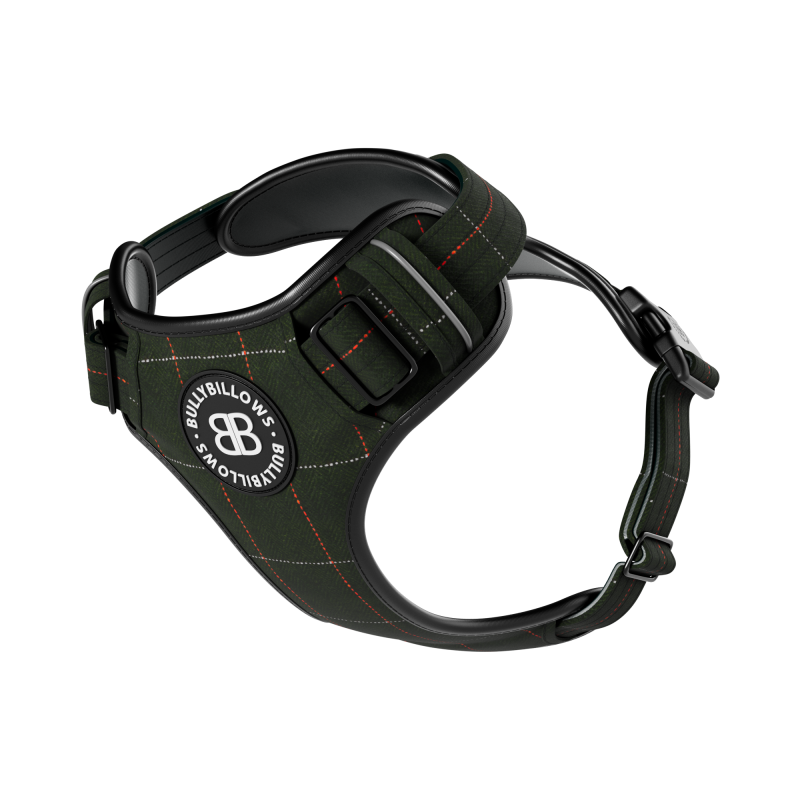 BullyBillows Tweed Premium Comfort Harness Твидовая анатомическая шлея с мягкой подкладкой для собак с проблемной кожей (DGreen M (В))