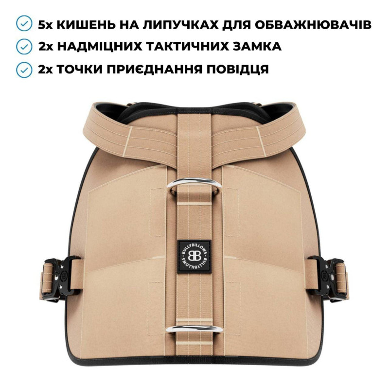 BullyBillows Weight & Fitness Premium Harness Тренировочная шлея для собак с карманами для утяжелителей (Beige C (L))