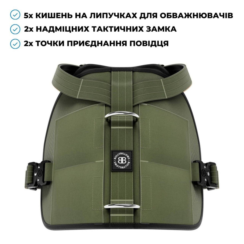 BullyBillows Weight & Fitness Premium Harness Тренировочная шлея для собак с карманами для утяжелителей (Khaki C (L))