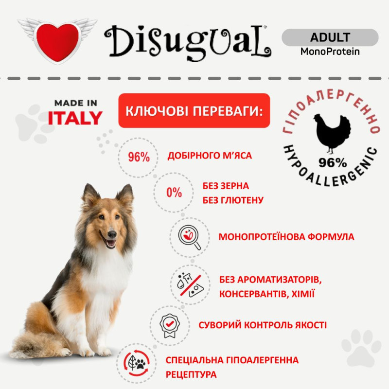 монопротеинового корма холистик для собак Disugual Dog MonoProtein 96% Chicken: