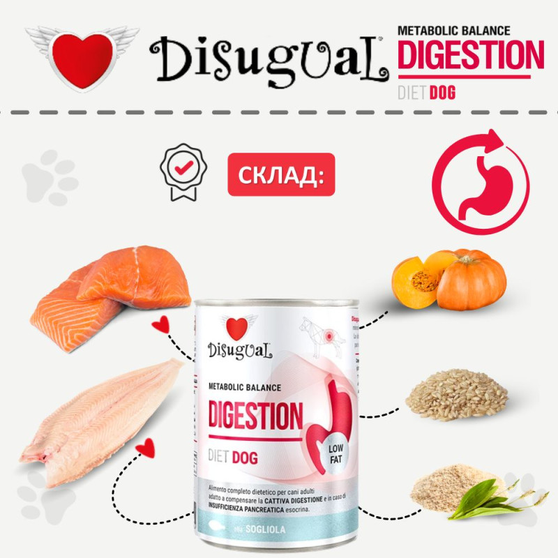 Disugual Metabolic Balance Diet Dog Digestion Low Fat Sole Fish Влажный лечебный корм для собак при заболеваниях ЖКТ Паштет из Морского Языка