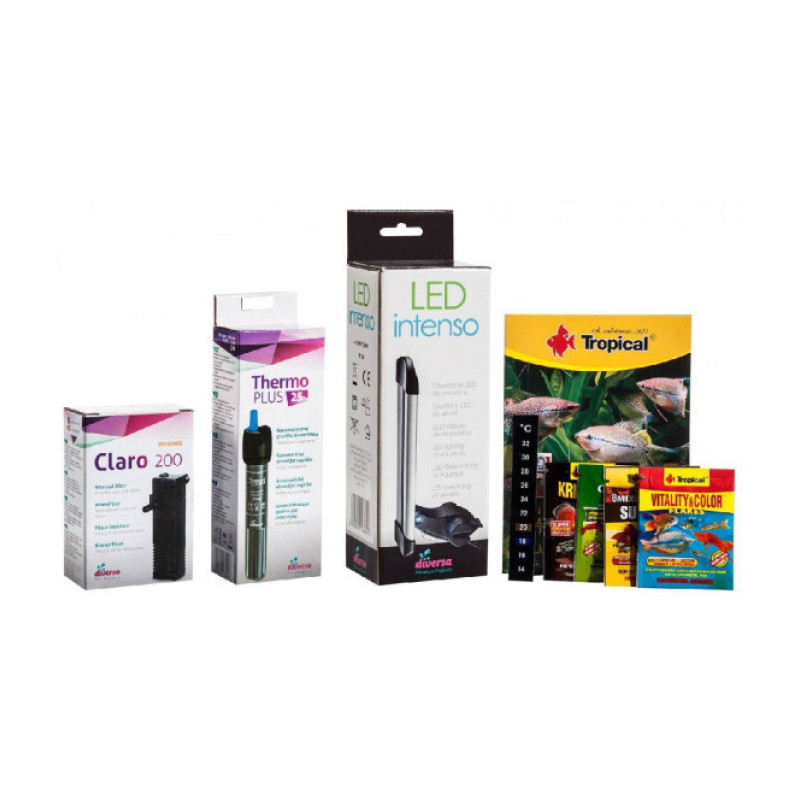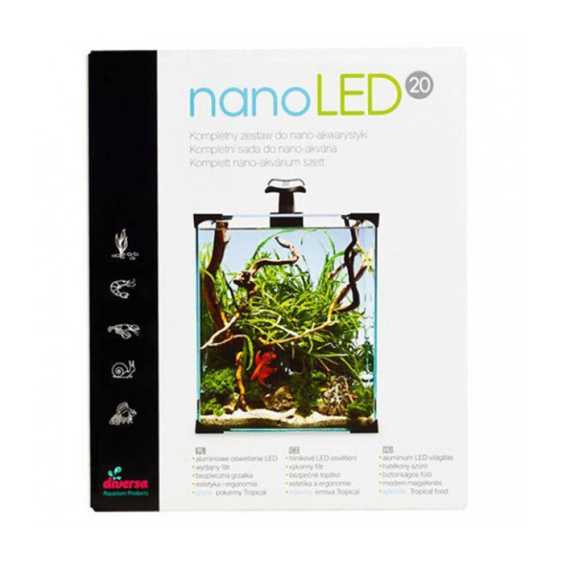 Diversa nanoLED 20 Набор для креветок, улиток и растений с нано-аквариумом 20 л, оборудованием и кормом