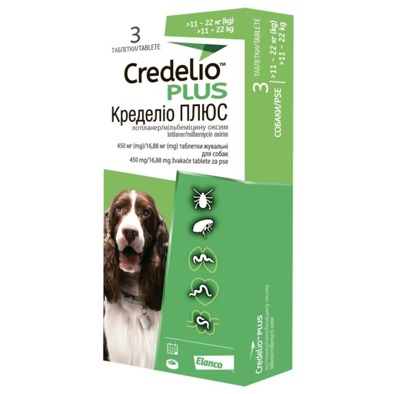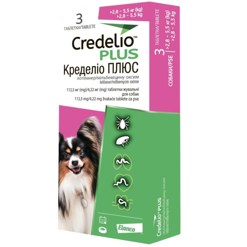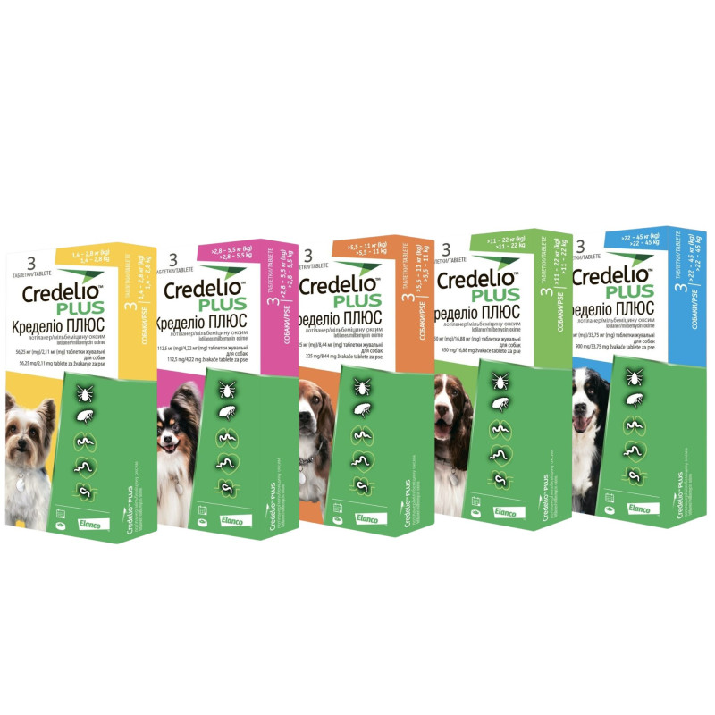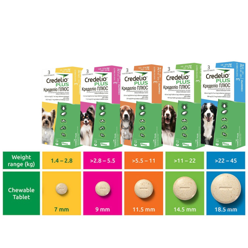Elanco Credelio Plus Жевательные таблетки для собак от блох, гельминтов, иксодовых и кожных клещей Кределио Плюс