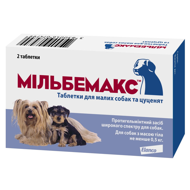 Elanco Milbemax Puppies & Mini Dogs Противогельминтный препарат для щенков и взрослых собак весом до 5 кг Мильбемакс (0,5-5 кг)