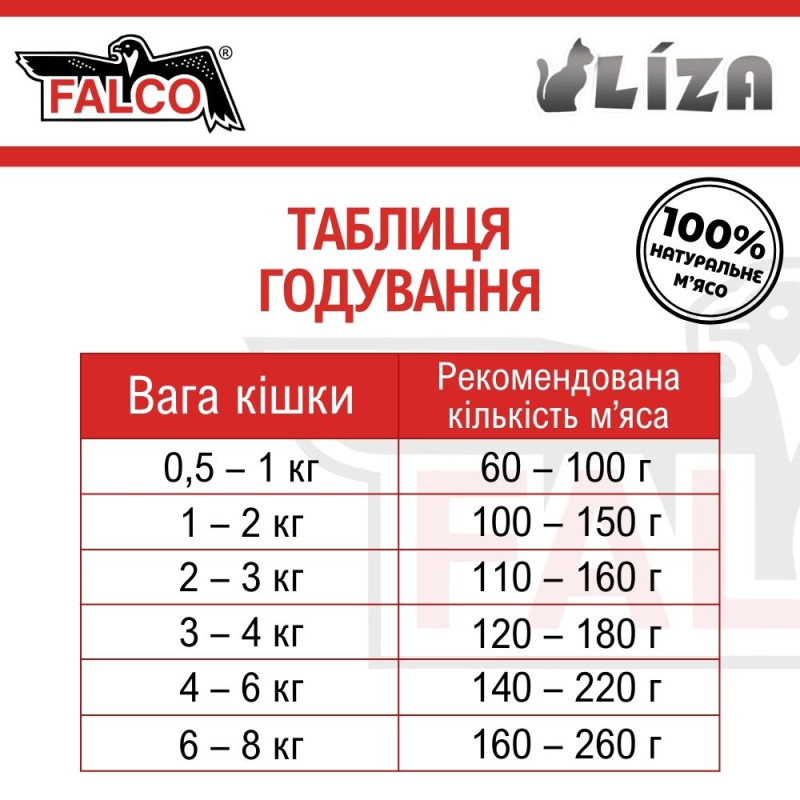 котов FALCO LIZA Cat только естественный аромат и вкус натурального мяса для