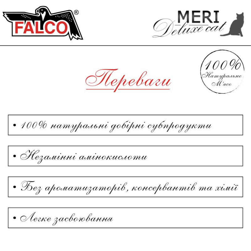 котов FALCO MERI Deluxe Cat только естественный аромат и вкус натурального мяса