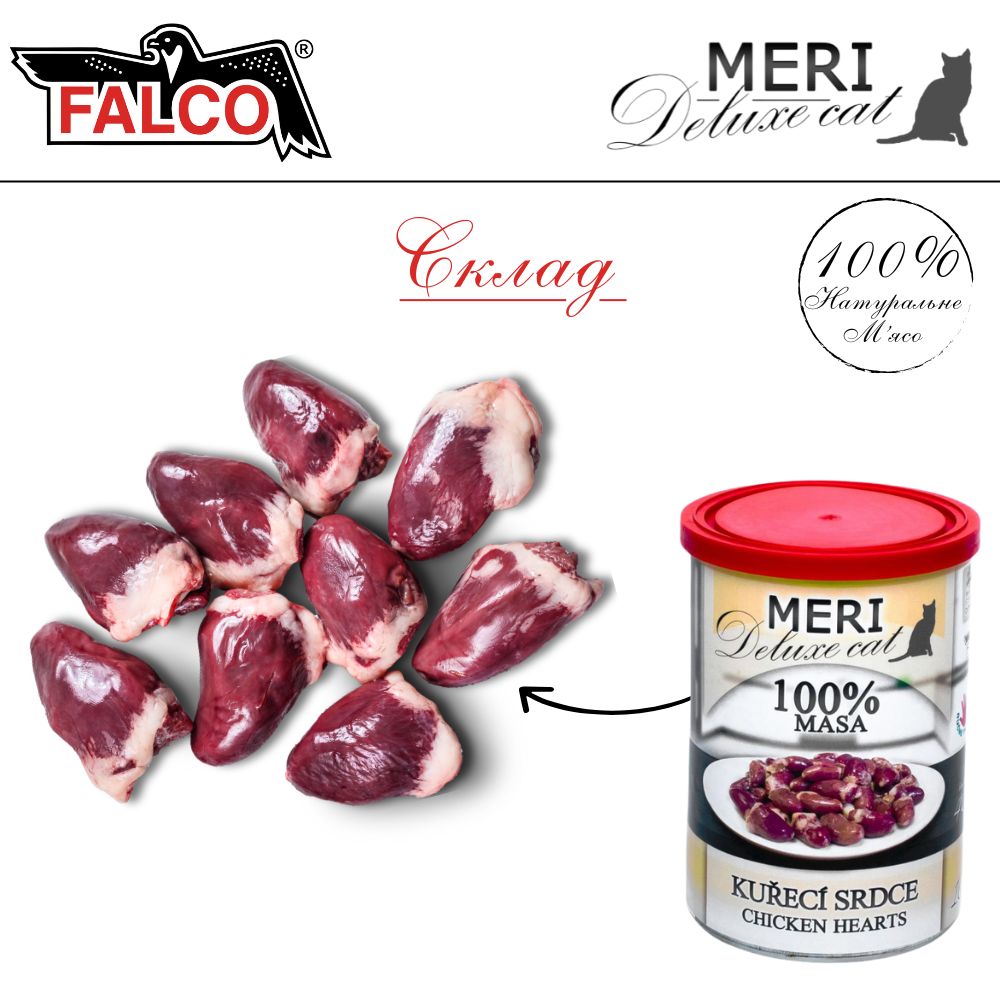FALCO MERI Deluxe Cat 100% Meat Chicken Hearts Консервированное мясо для котов Куриные Сердечки