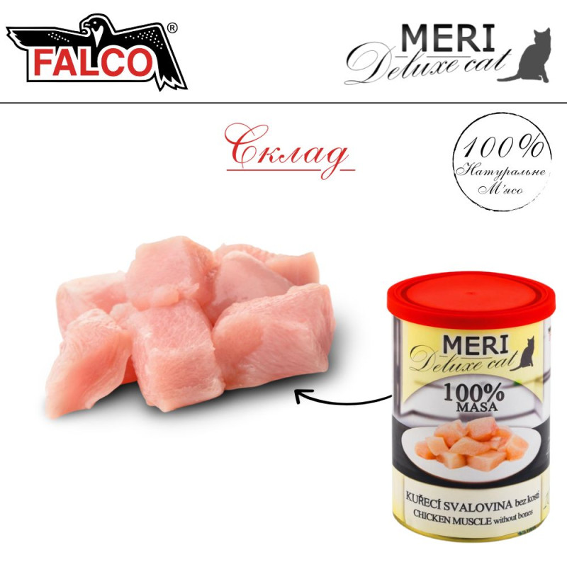 FALCO MERI Deluxe Cat 100% Meat Chicken Muscle Консервированное мясо для котов Мясо Курицы без костей