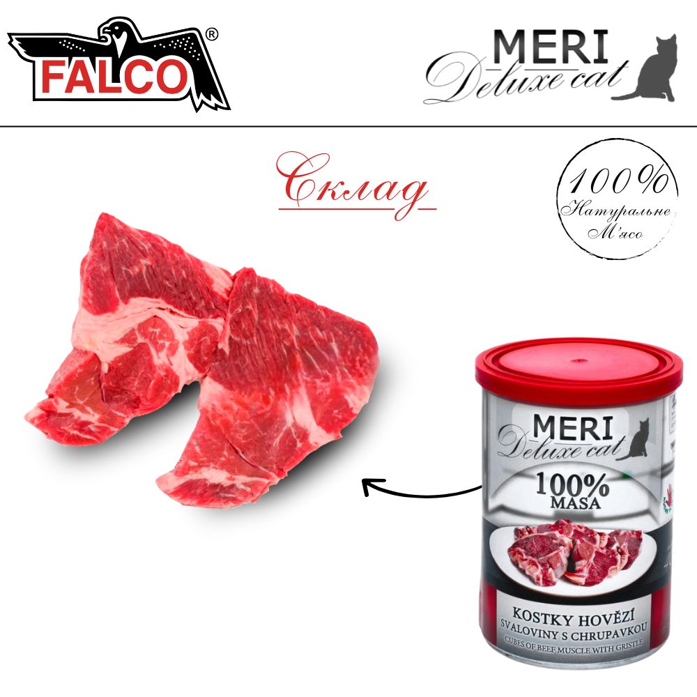 FALCO MERI Deluxe Cat 100% Meat Cubes Beef Muscle Gristle Консервированное мясо для котов Говядина с Хрящами