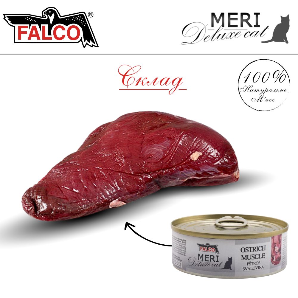 FALCO MERI Deluxe Cat 100% Meat Ostrich Muscle Консервированное мясо для котов Мясо Страуса без костей