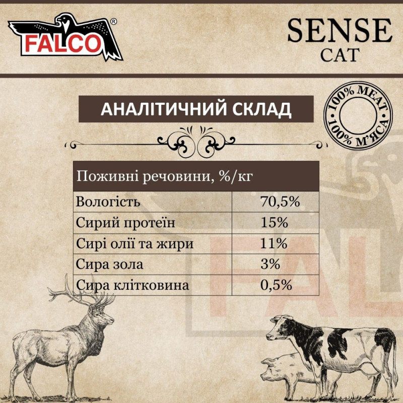 FALCO SENSE CAT 100% Meat Deer & Beef Консервированное мясо для котов с чувствительным пищеварением Олень с Говядиной