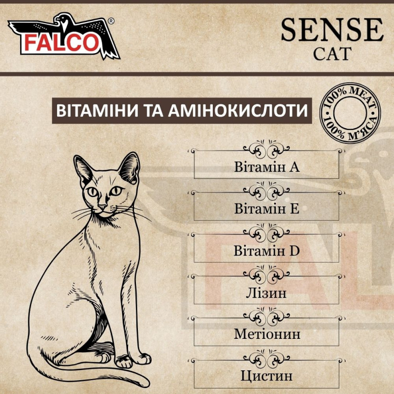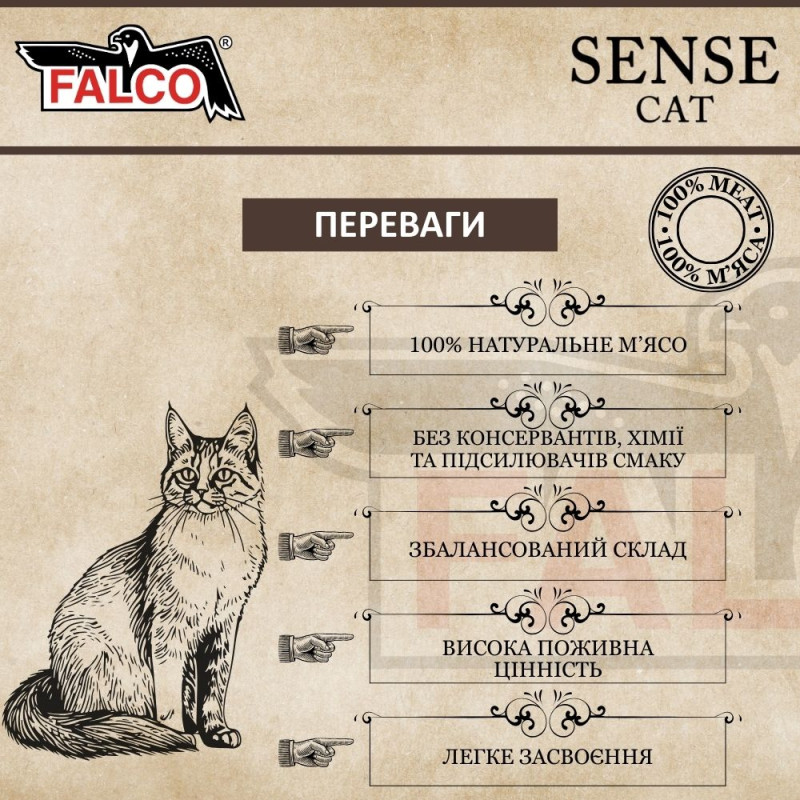котов FALCO SENSE CAT только естественный аромат и вкус натурального мяса для