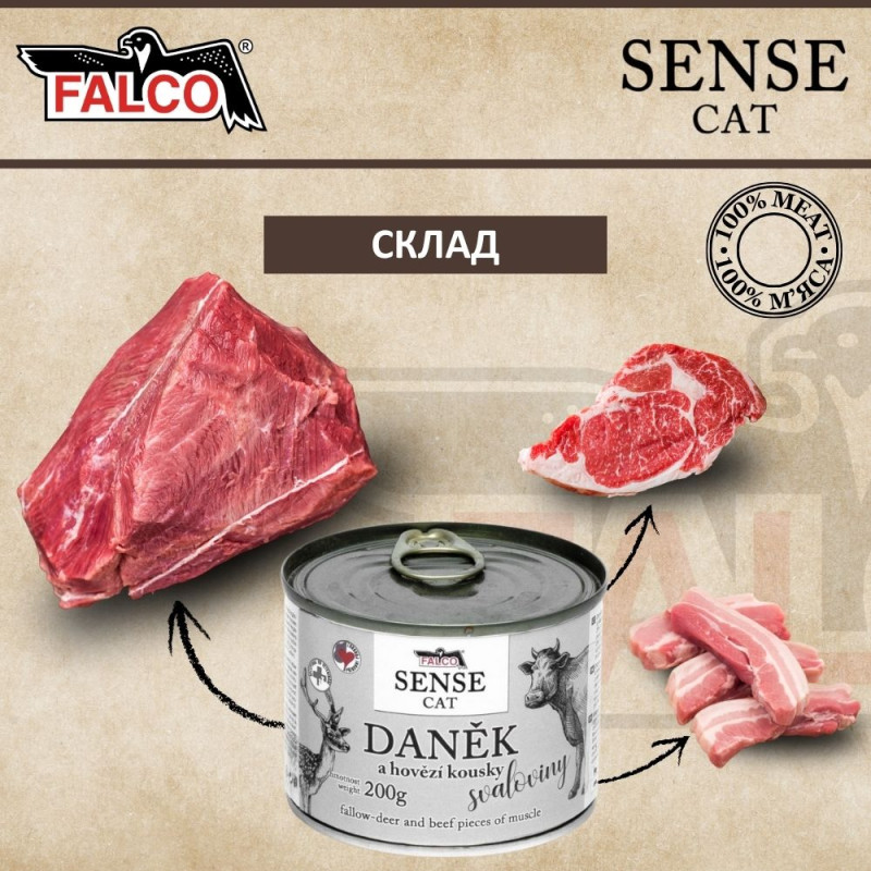 FALCO SENSE CAT 100% Meat Deer & Beef Консервированное мясо для котов с чувствительным пищеварением Олень с Говядиной