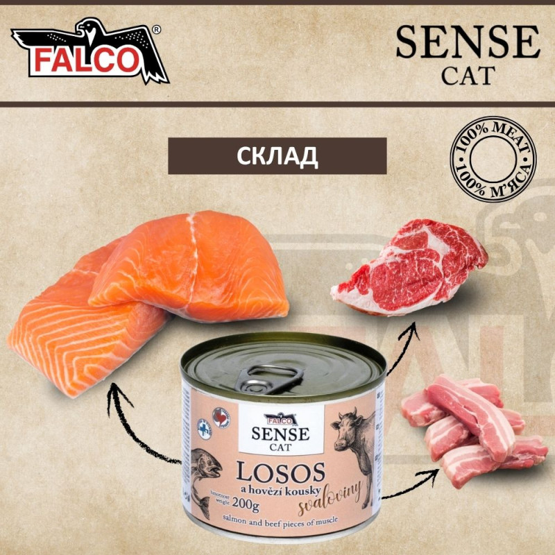 Говядиной FALCO SENSE CAT 100% Meat Salmon & Beef: