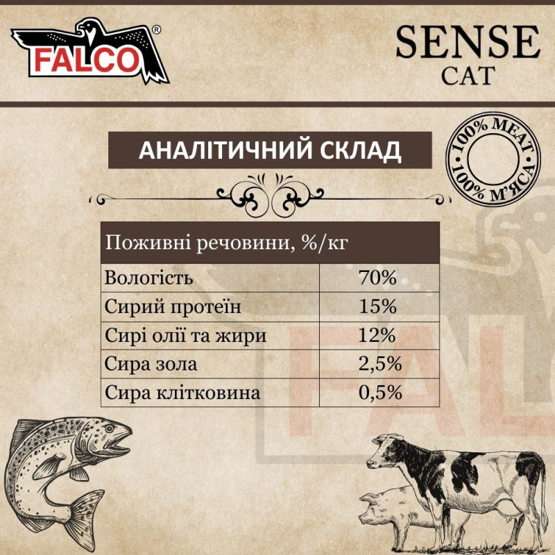 FALCO SENSE CAT 100% Meat Salmon & Beef Консервированное мясо для котов с чувствительным пищеварением Лосось с Говядиной