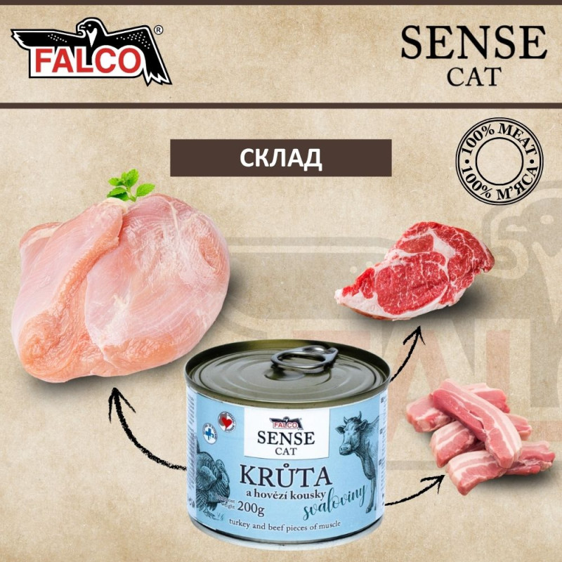 Говядиной FALCO SENSE CAT 100% Meat Turkey & Beef: