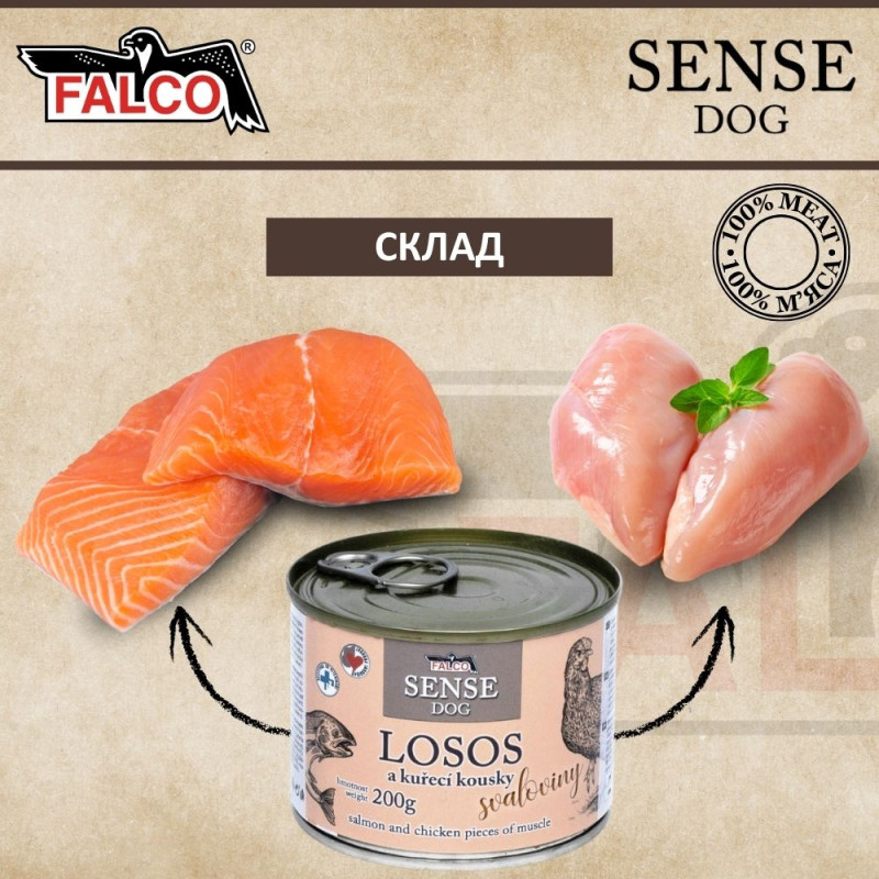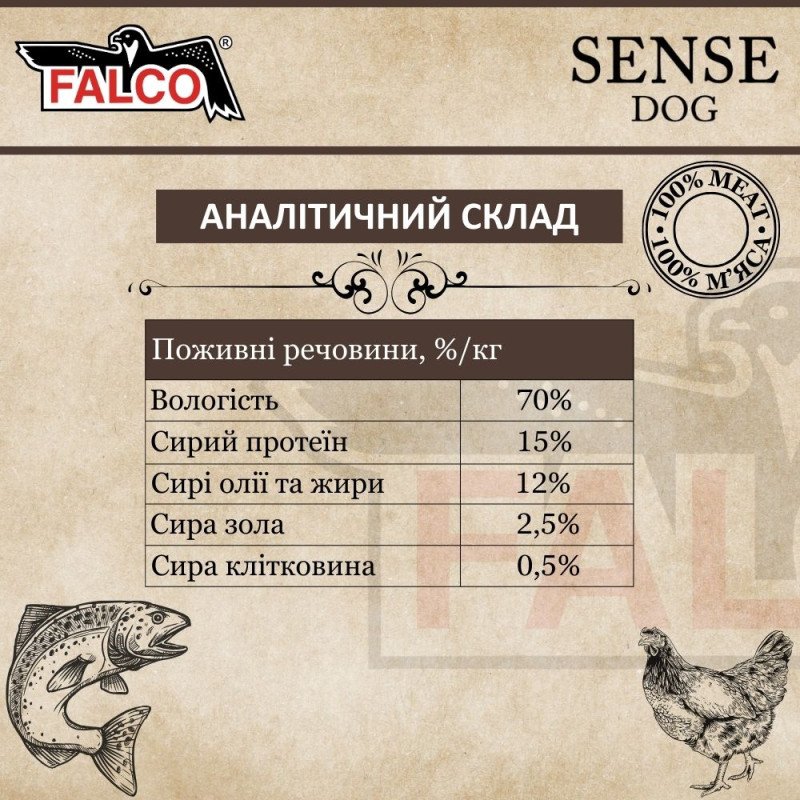 FALCO SENSE DOG 100% Meat Salmon & Chicken Консервированное мясо для собак с чувствительным пищеварением Лосось с Курицей