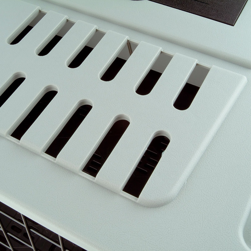 Комфорт для собак: большое внутреннее пространство позволяет животным стоять, лежать или сидеть удобно во время путешествия, широкие решетки обеспечивают отличную внутреннюю вентиляцию, а раздельная решетка обеспечивает личное пространство.