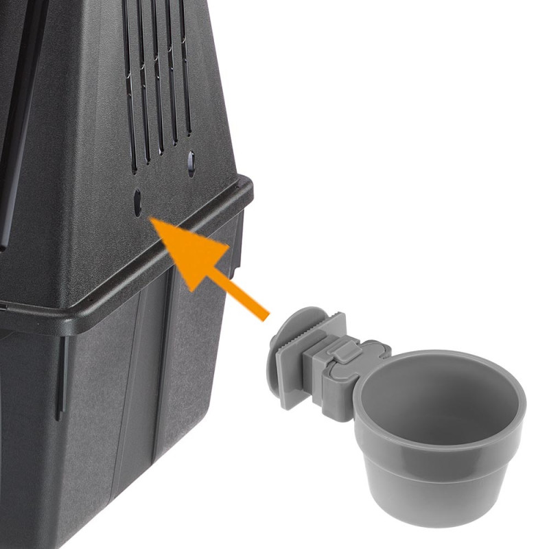 Комфорт для владельца: автомобильная переноска имеет дополнительное верхнее отделение для размещения полезных аксессуаров или вкусностей своего любимца. Также переноска поставляется со специальным крючком для дорожной поилки или миски.
