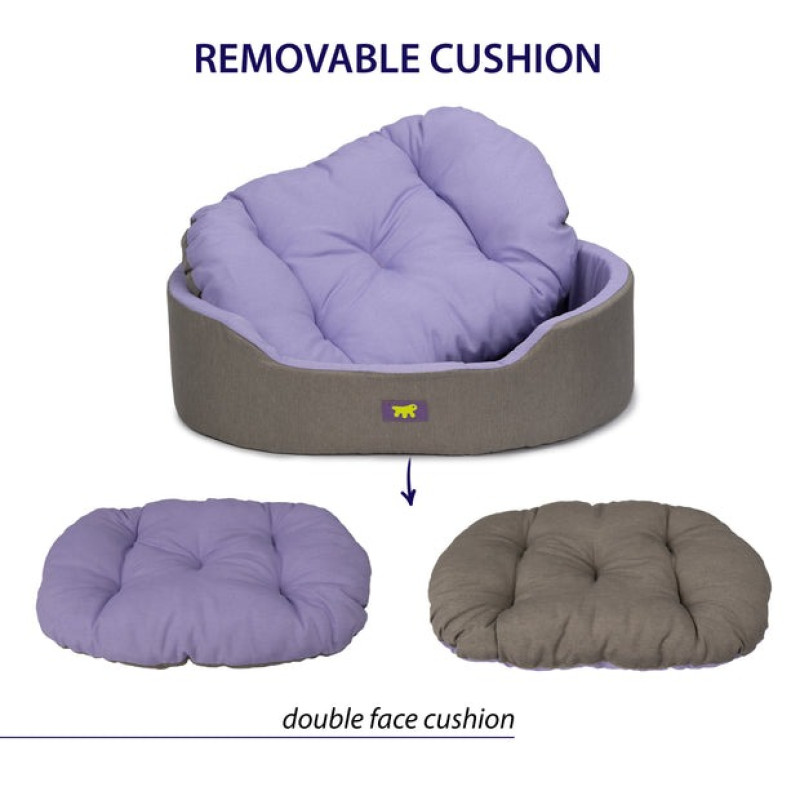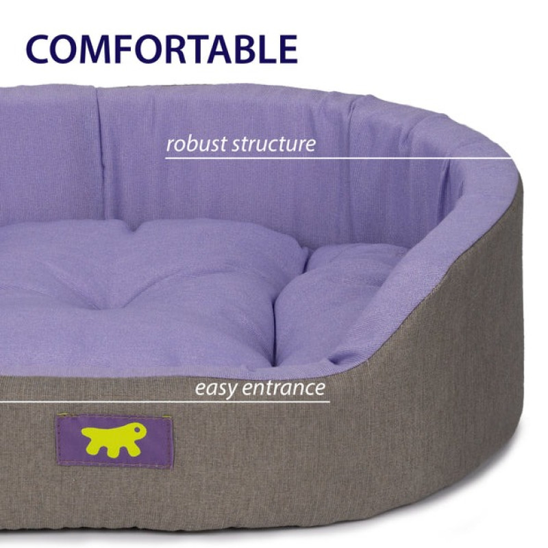 Овальный лежак с бортиками и двусторонней подушкой для собак и котов Dandy Cama - идеальное место для отдыха вашего любимца. Лежанка изготовлена из серой льняной ткани и имеет двустороннюю подушку, которая наполнена хлопком, что обеспечивает приятный комфорт во время лежания.