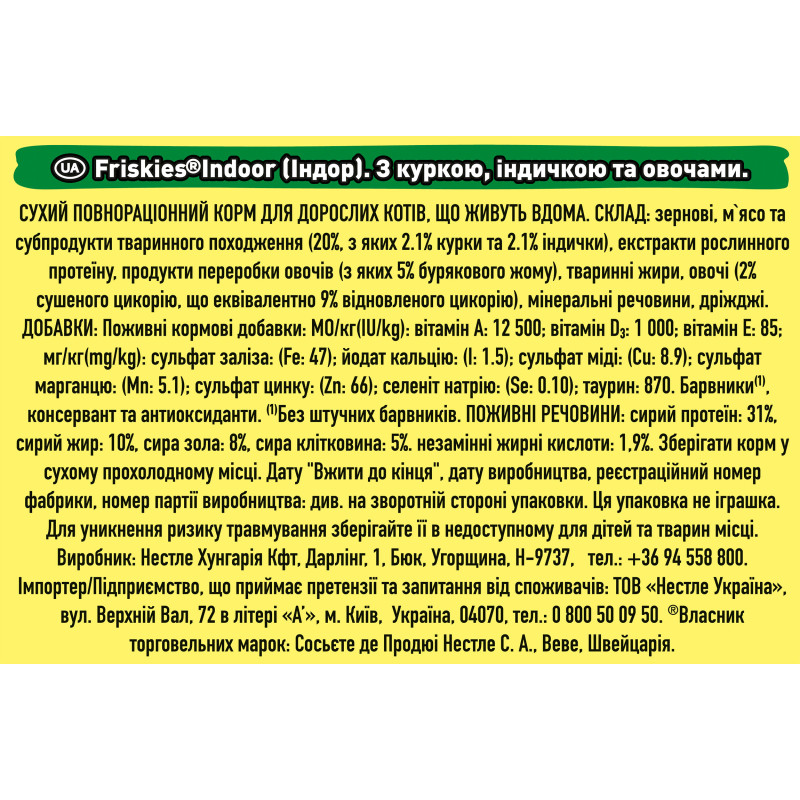 Friskies Indoor Cat Chicken & Vegetables Сухой корм для взрослых домашних котов с курицей и овощами