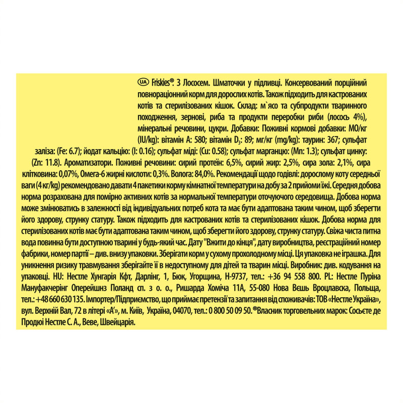 Friskies Salmon in Gravy Влажный корм для взрослых котов Кусочки с лососем в подливе