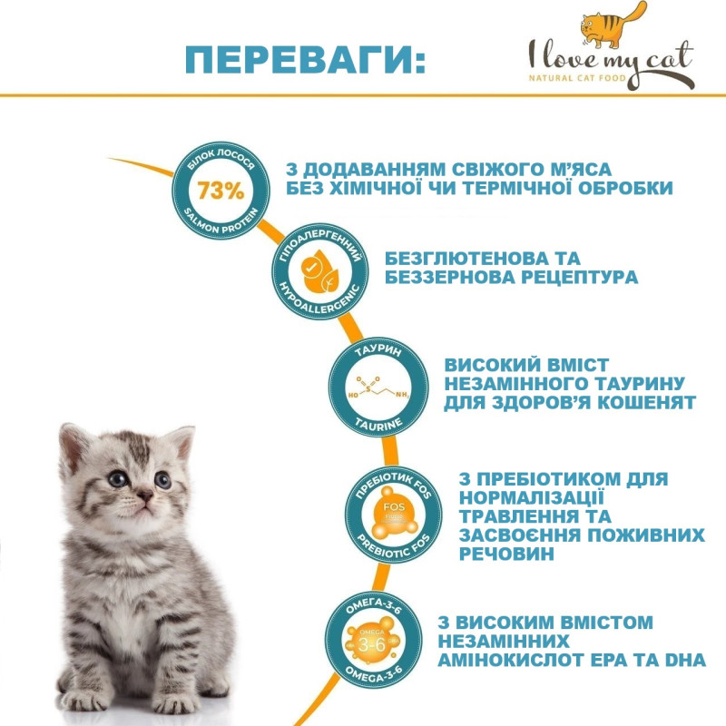 I Love my cat Kitten Salmon Беззерновой гипоалергенный сухой корм холистик с лососем для котят