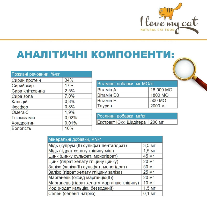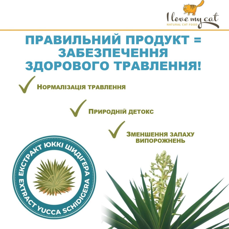 Уникальные ингредиенты в составе беззернового корма для котят I Love my cat Kitten Salmon не только обеспечивают организм котенка жизненно необходимыми компонентами, но и предотвращают развитие распространенных болезней желудочно-кишечного тракта, дерматологических заболеваний и способствуют здоровому развитию всех систем и органов котенка.