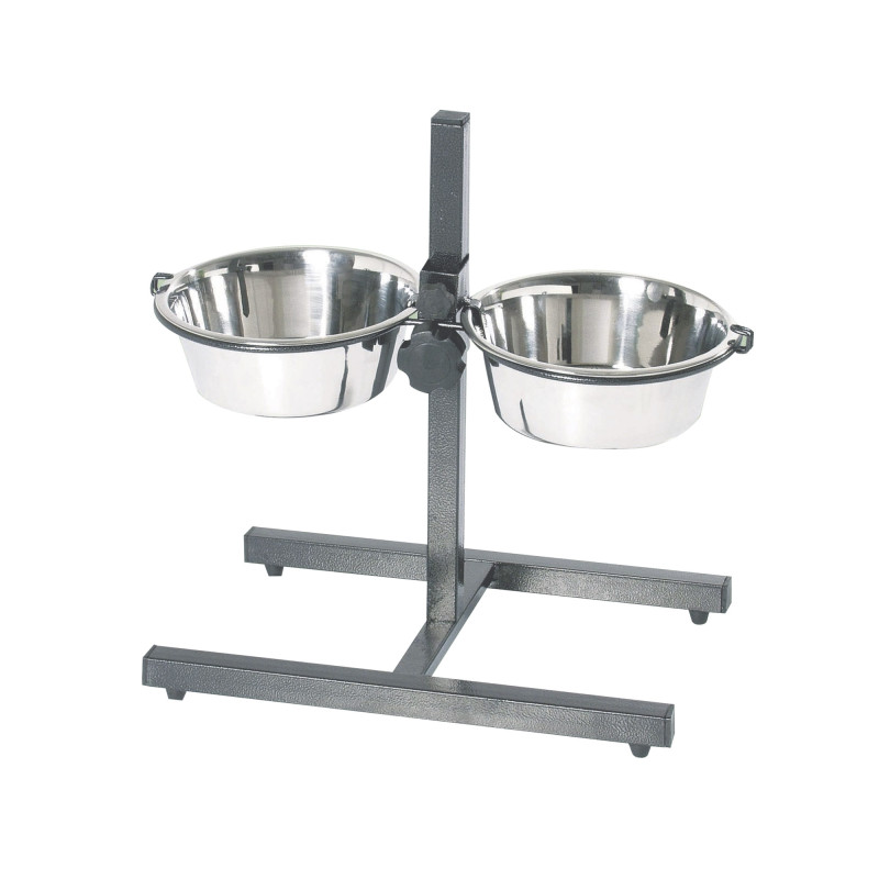 Комплект антискользящих мисок из нержавеющей стали на штативе для собак Dog Bar Stand Bowls лучшее решение для владельцев средних и крупных собак. Удобный штатив оборудован регулирующим механизмом, который обеспечит правильное расположение миски соответственно росту собаки и предотвратит проблемы со спиной. Миски из комплекта изготовлены из тонкого металла, устойчивого к ударам, который невозможно разбить или сломать, что обеспечивает долговечность использования и безопасность для вашего четвероногого друга. Миски не поглощают запахов пищи, не меняют вкус блюд и абсолютно нетоксичны. Изысканный дизайн комплекта и однотонный цвет подойдет к любому интерьеру.
